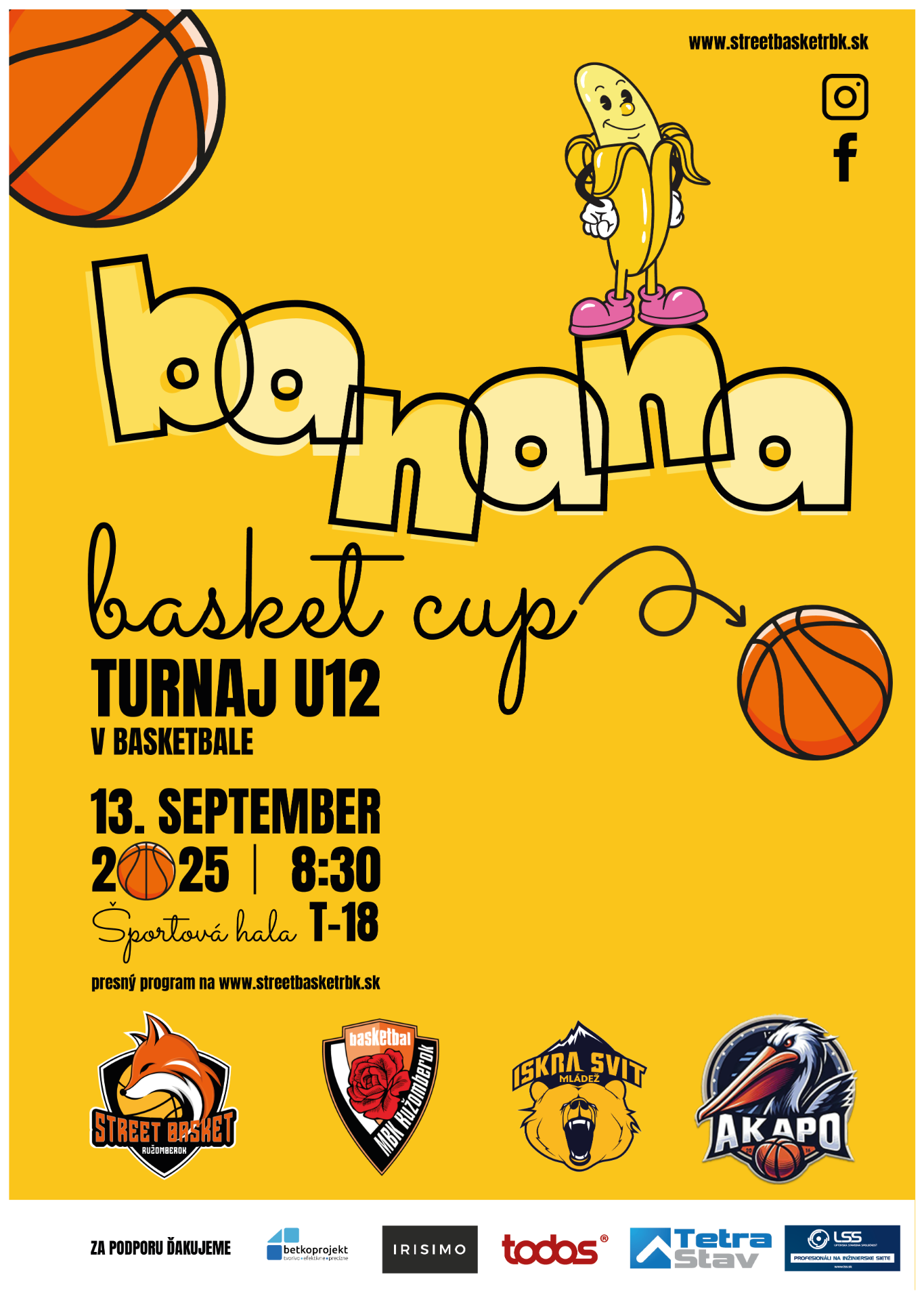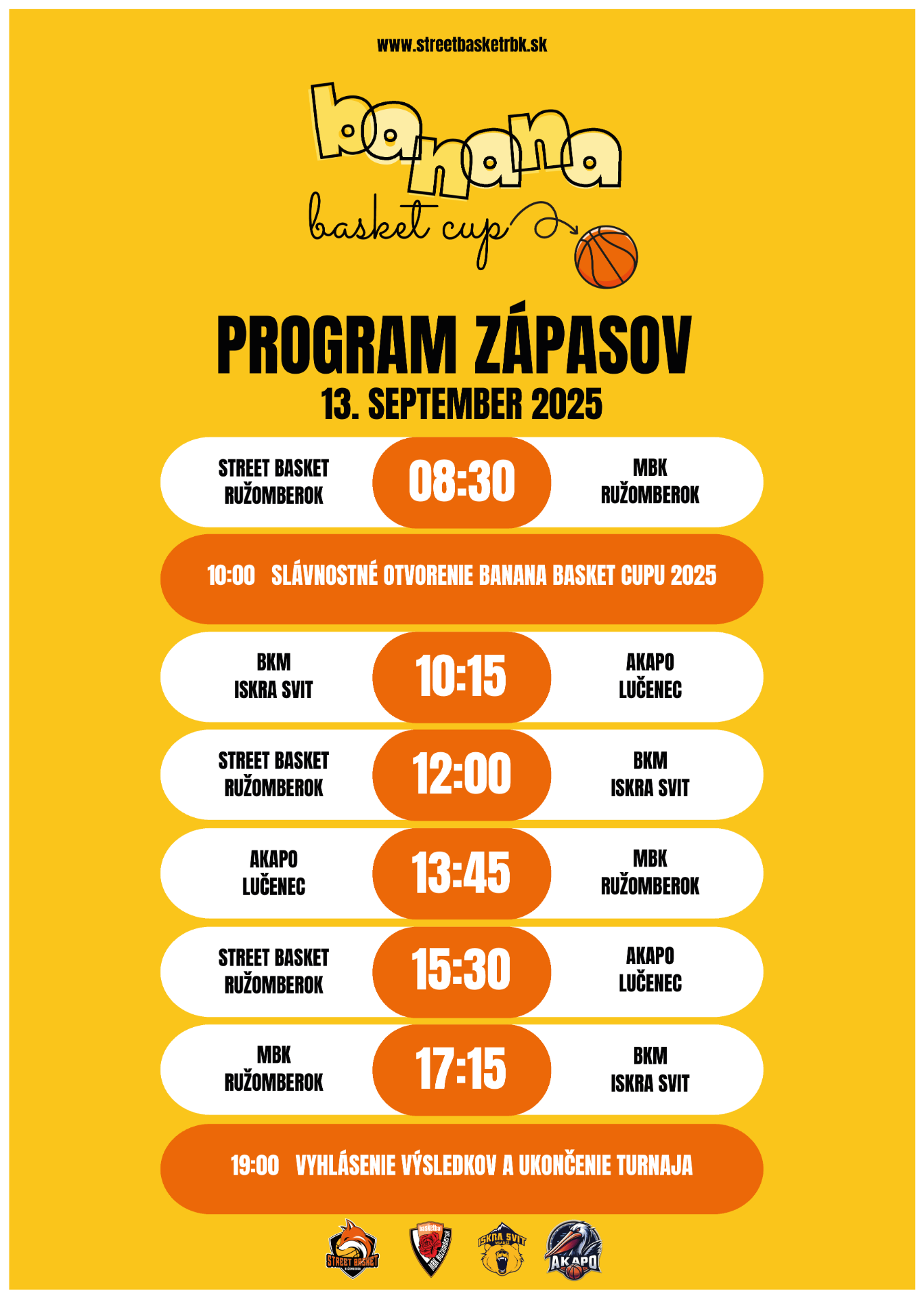 - 10:00 slávnostné otvorenie Banana Cup 2025